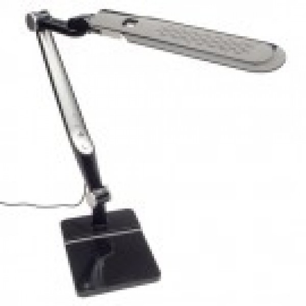 This sleek LED fixture includes an interchangeable weighted base and a clamp. Use the clamp to secure the fixture to the edge of your bench or the weighted base (6-1/4" square) to position the fixture anywhere you like. The arms can be adjusted up/down and fore/aft and the lamp head can swivel on two axes. Three color temperature modes provide light ranging from warm to cool. The intensity of the light can aso be adjusted. The touch sensitive controls make it easy to turn on/off and adjust the light output. Plastic and metal construction with black finish. 120 volts. Not for sale in California.