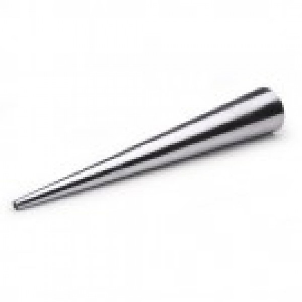 An indispensable tool in the fabrication of hoop earrings. Measures 12" long overall and tapers from 12.5 mm up to 50 mm in dia. (1/2" to 2"). Made from solid steel and weighing almost 4 lbs.