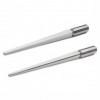 Fashioned from steel, each mandrel tapers from 18 mm to 6 mm and is 12" long. Both mandrels are square in profile: item 320-618 has sharp corners and item 320-619 has cut corners. Each mandrel is provided with a steel adapter that screws into the handle of the mandrel which allows the user to install the mandrel into a bench vise or into a hole you've created in your work bench. Or, you can install these mandrels into our Mandrel Vise. Either arrangement permits hands-free work.