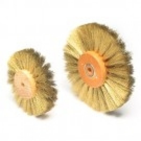 For surface finishing of metals. Produces a softer, satin or matte finish. Strands are .004" brass. 1/4" arbor holes.