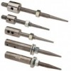 These combination spindles have both straight and tapered threaded sections for holding a variety of polishing buffs. Each includes a nut for securing buffs along the straight section. Some also also include washers.